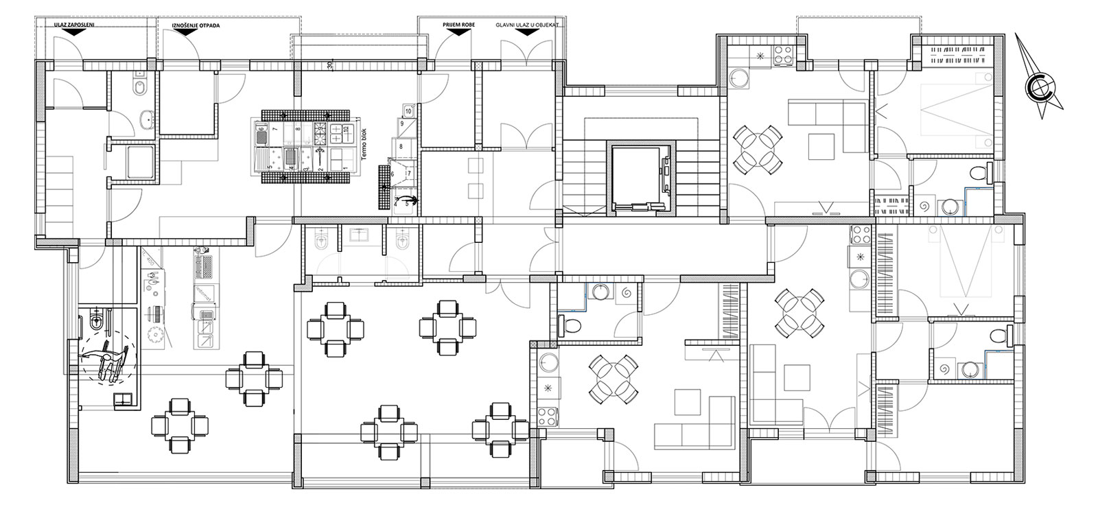 Savremeno opremljen i uređen parter sa grejnim kablovima na pešačkim i kolskim pravcima
